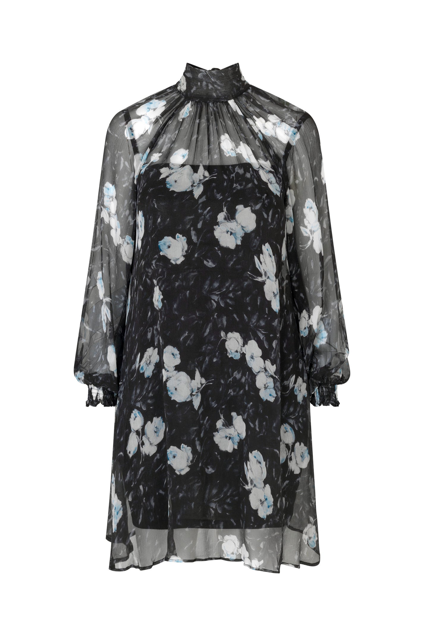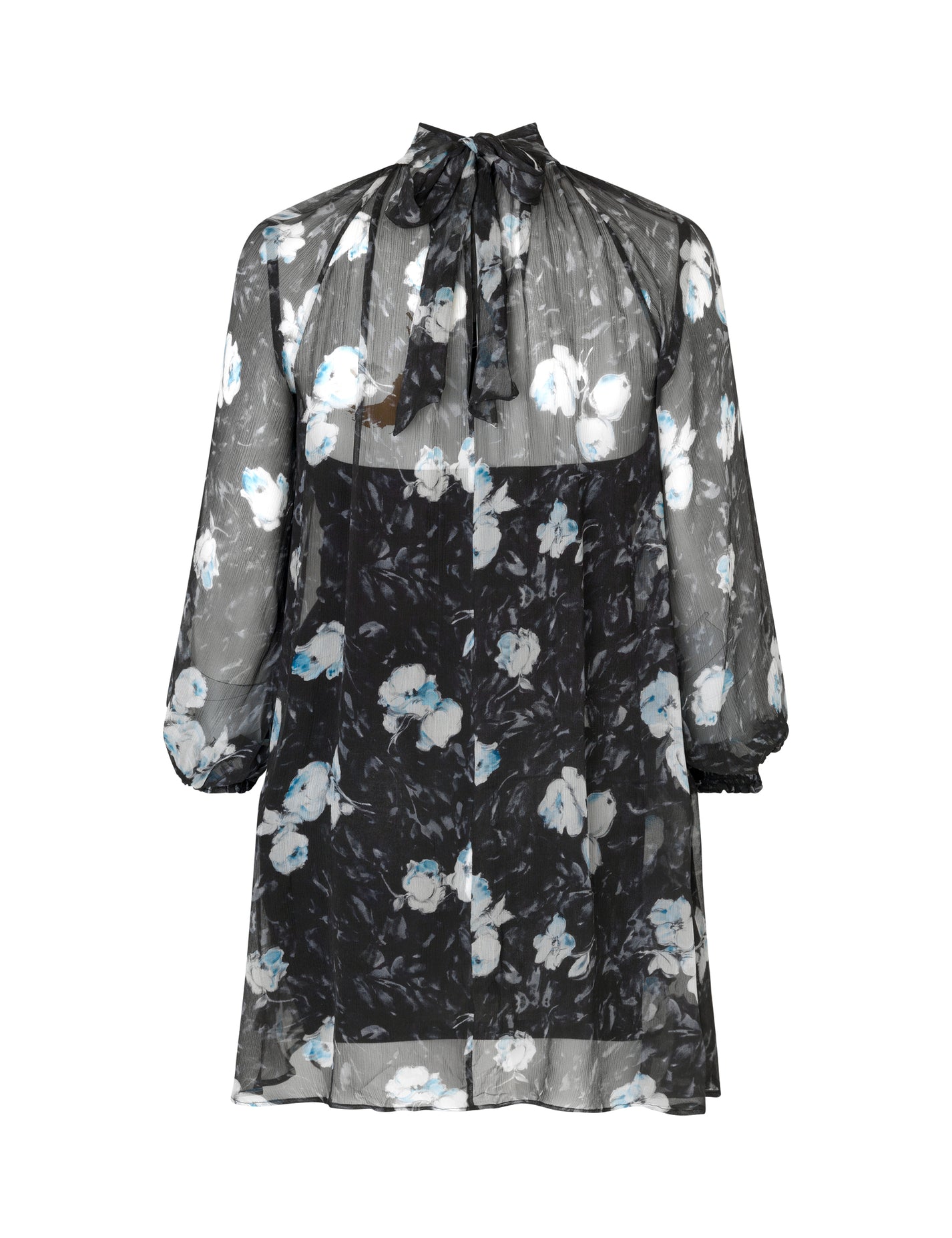 Delivery Month: March 2026 Pre-order deadline: 05.09.2025 / This silk chiffon dress features a delicate floral print, sheer sleeves, and a softly gathered neckline with tie detail. Fully lined in soft jersey for comfort and ease.